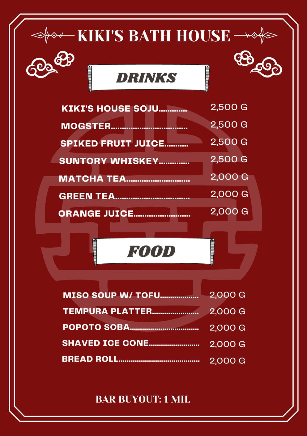 Come relax at Kiki's Bath House after a long night out... We have drinks, refreshments, lovely ladies, and of course, baths.